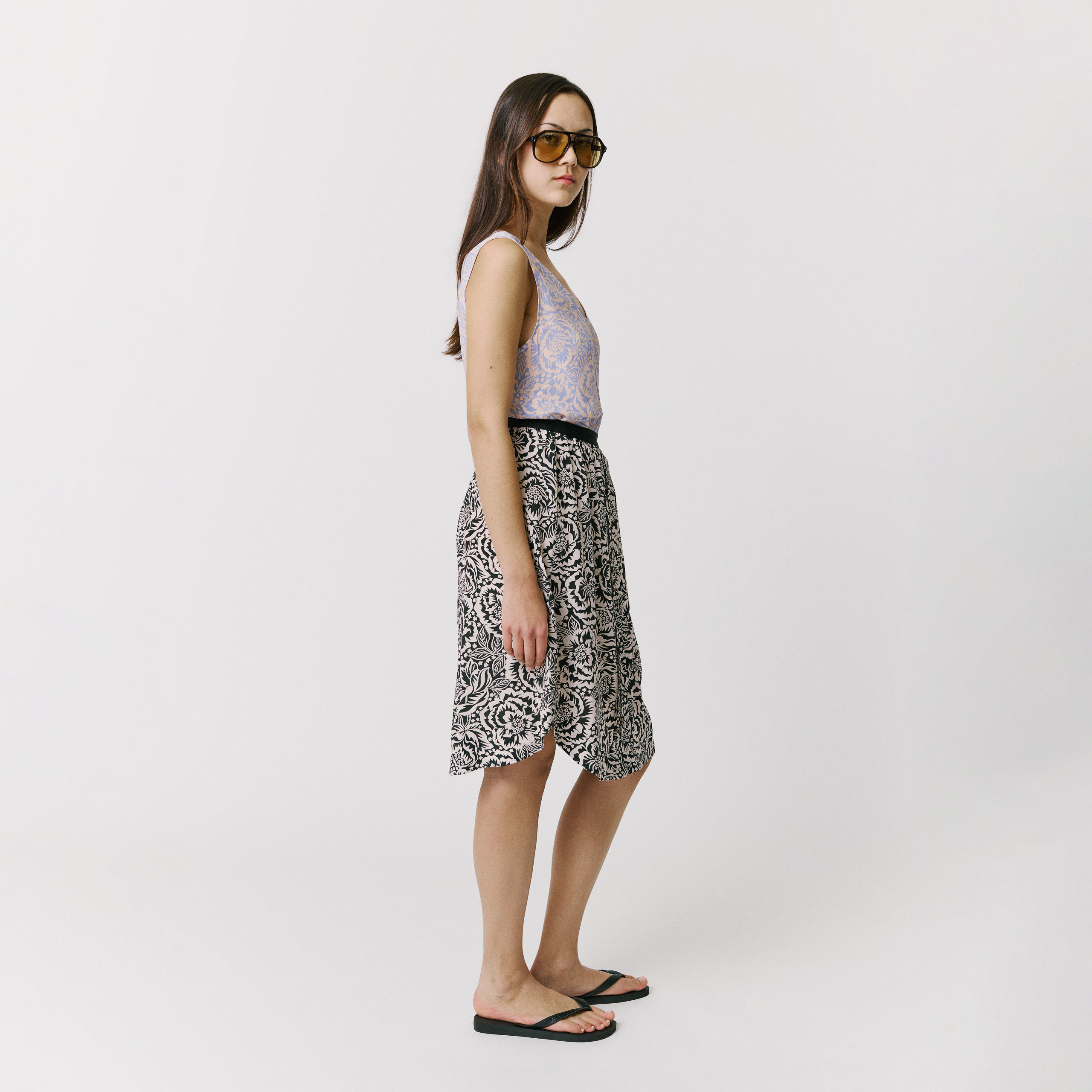 Plis piqués au milieu devant qui structurent joliment la silhouette, ourlet arrondi pour une ligne douce et fluide.