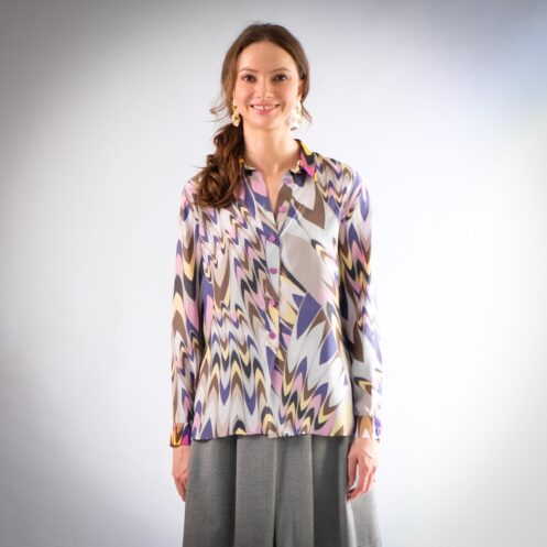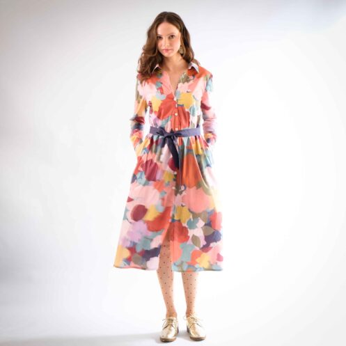Coupe trapèze, structurée par des plis qui apportent du volume et du mouvement. Taille haute soulignée par une large ceinture, fermée par une patte de boutonnage dissimulant une fermeture éclair. Poches italiennes sur les côtés et longueur genoux.