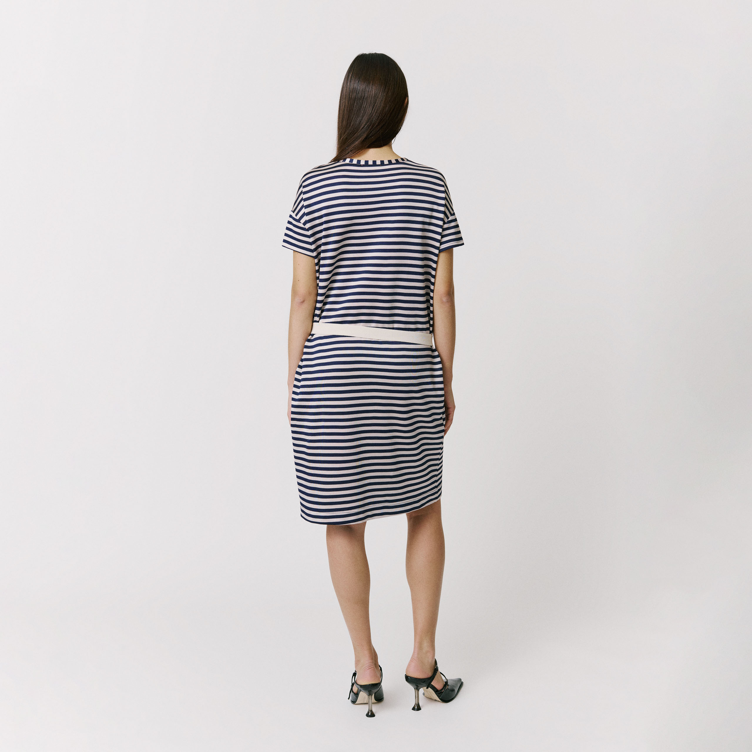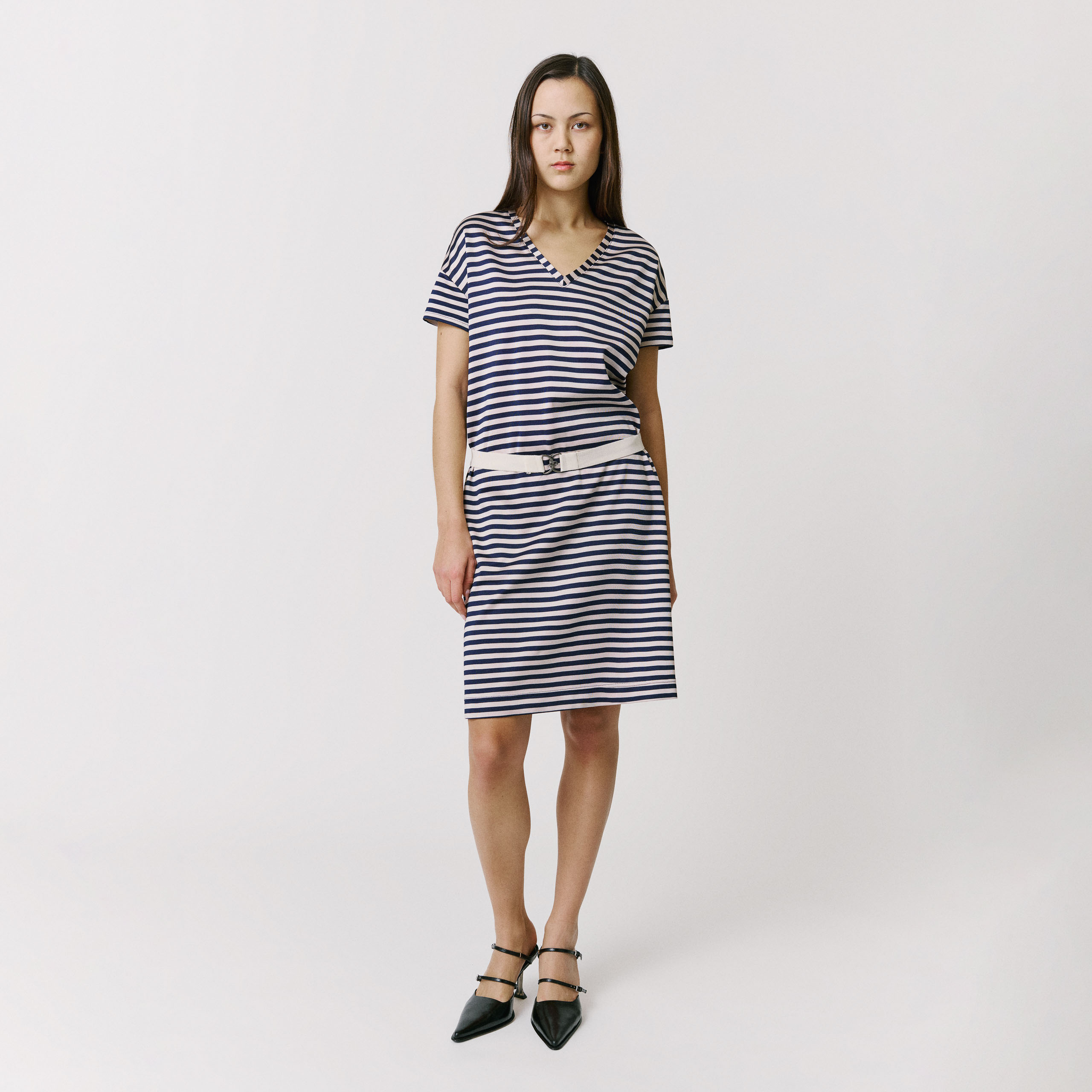 Coupe droite alliant le confort d’un t-shirt à la féminité d’une robe, simple et pratique.