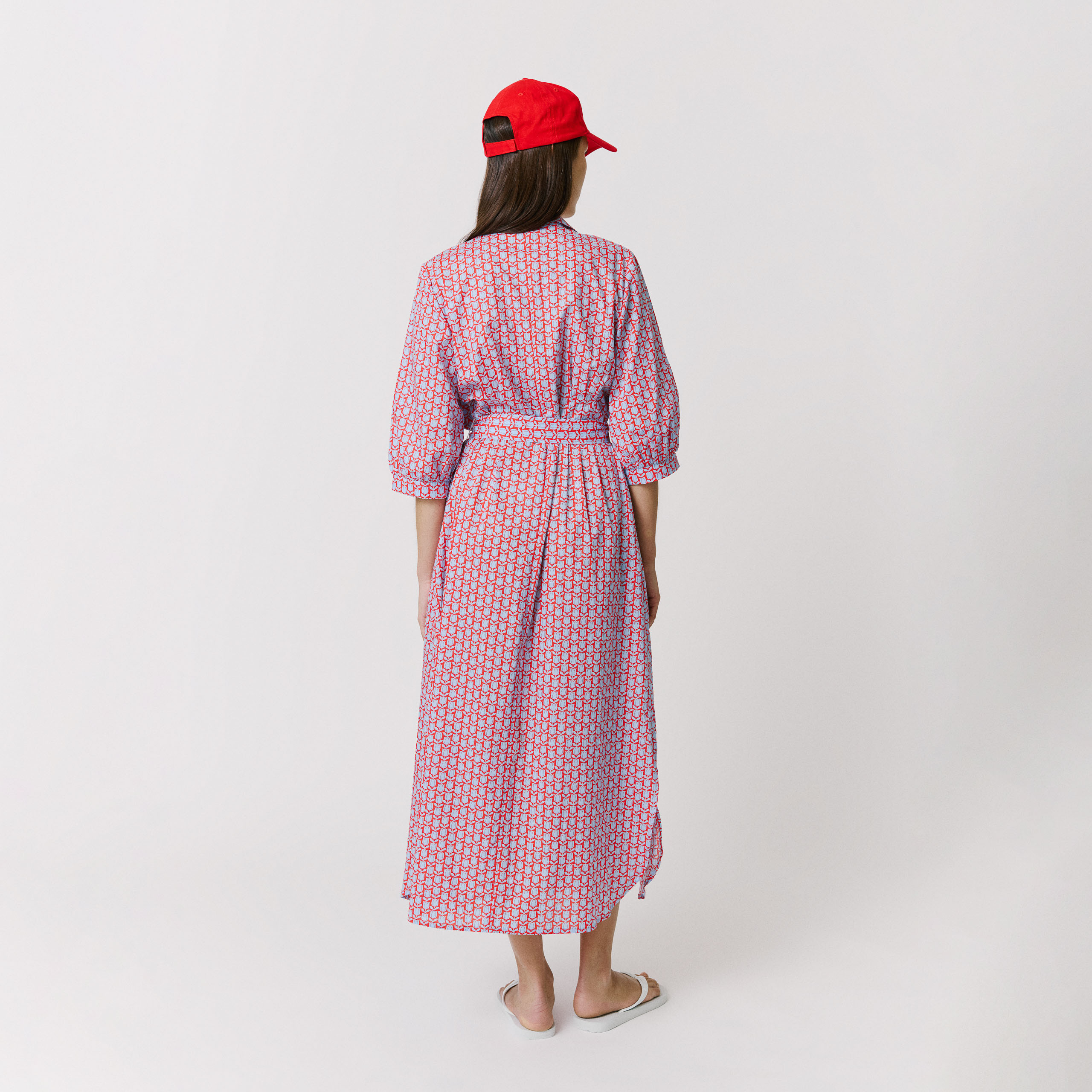 Manches 3/4 légèrement ballon, col chemisier et patte de boutonnage sur toute la longueur.